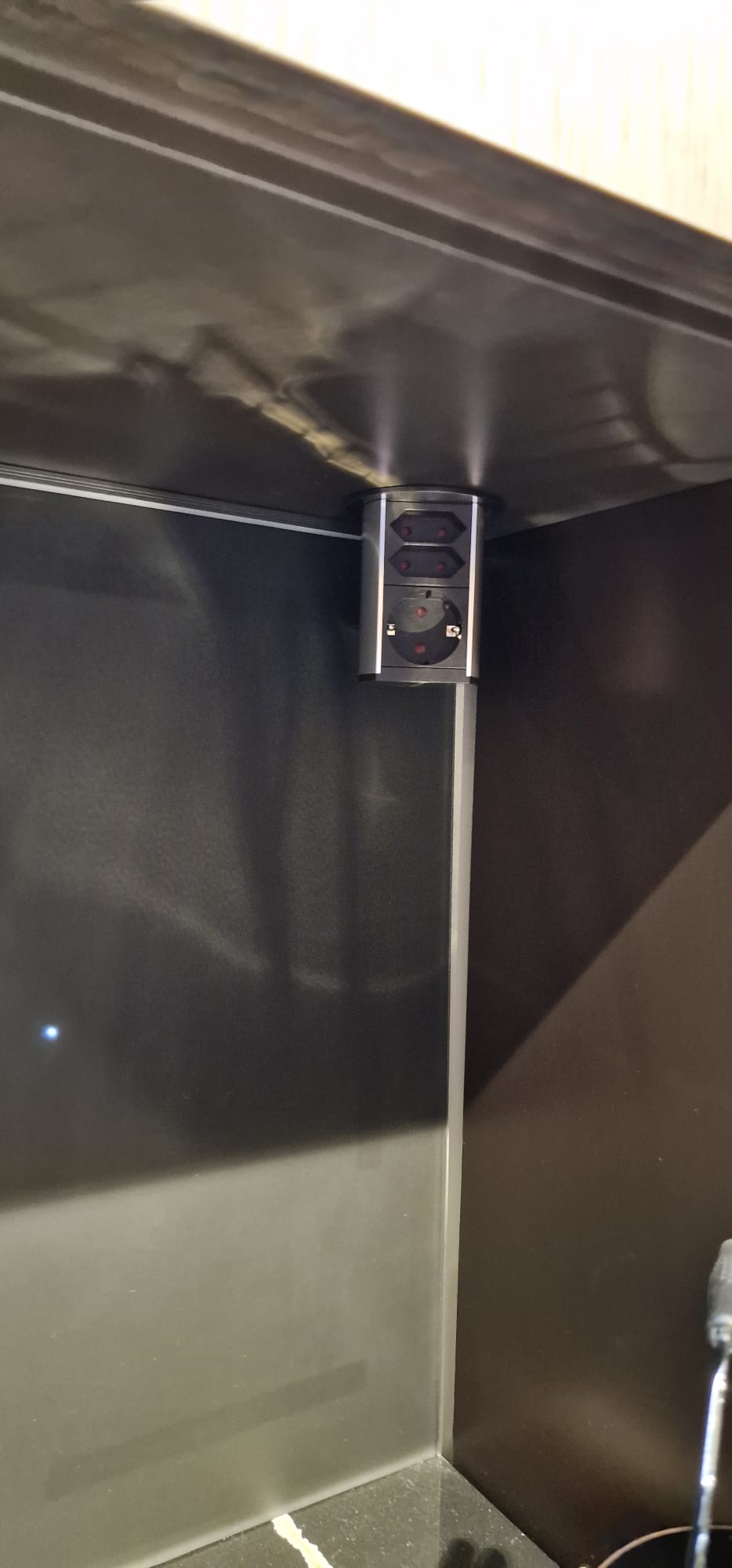 Completa di frigorifero 400 lt, forno da 75 cm, lavastoviglie integrata, piano cottura a induzione, cappa con aspirazione 550 mc/h, schienale in vetro temperato magnetico con illuminazione LED integrata.